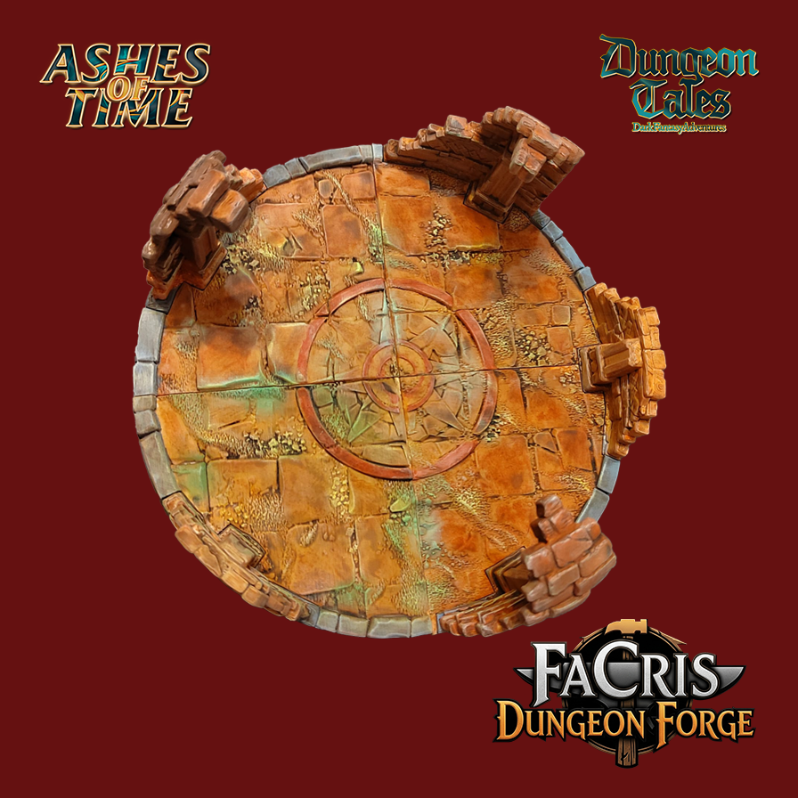 "Oltre l'ultima pesante porta di ferro, l'aria si fa improvvisamente densa e profuma di polvere antica. Vi ritrovate in una vasta sala circolare, il cui soffitto sembra essersi sbriciolato secoli fa, rivelando un cielo immobile. Il pavimento è lastricato di pietre consumate dal tempo, ma al centro risplende un antico Sigillo circolare: è il cuore del meccanismo che governa le Ceneri del Tempo.